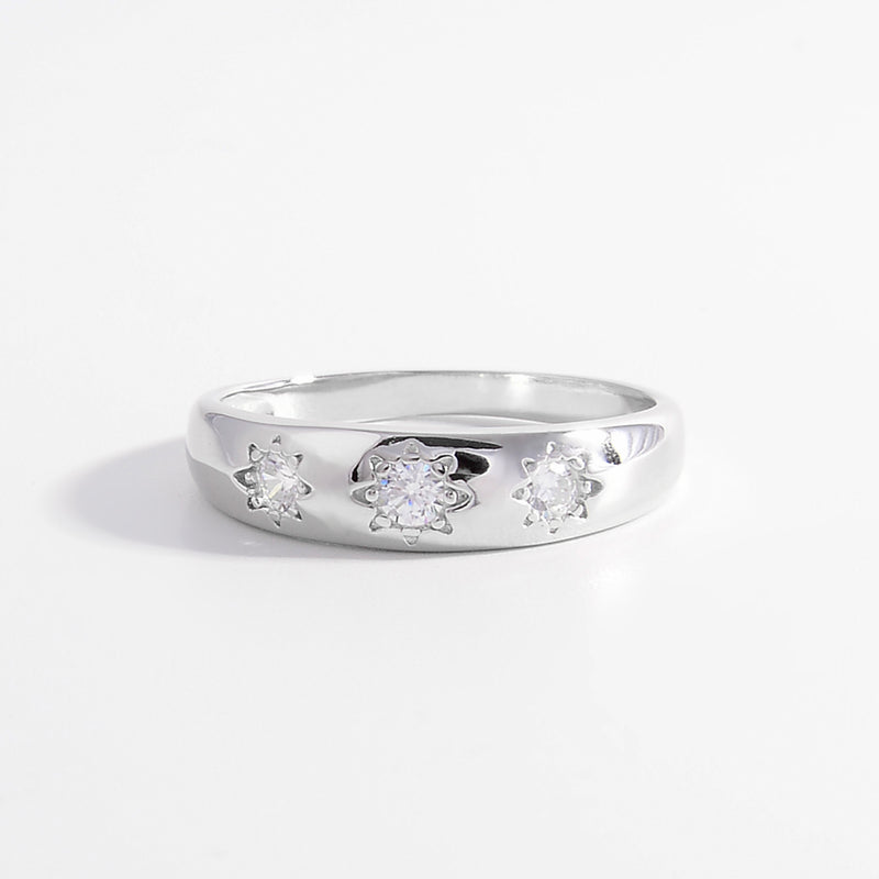 925 Sterling Silver Inlaid Zircon Wave Shape Ring