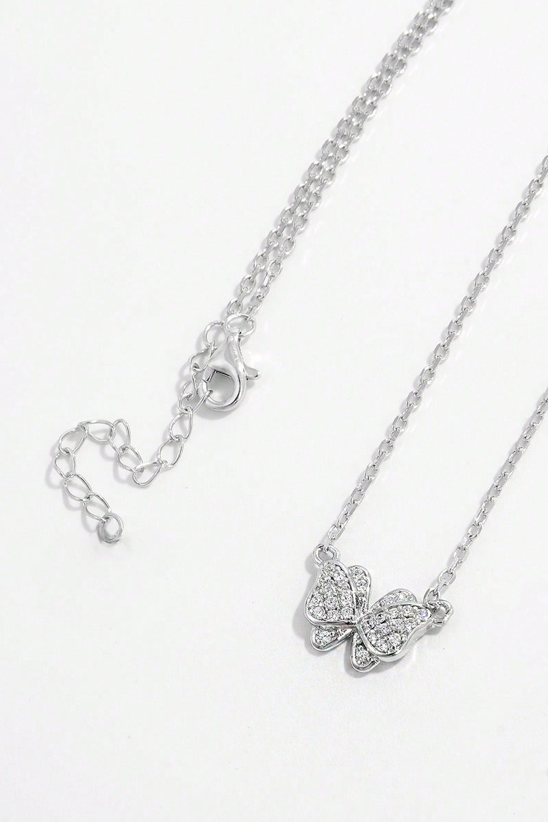 925 Sterling Silver Zircon Butterfly Pendant Necklace