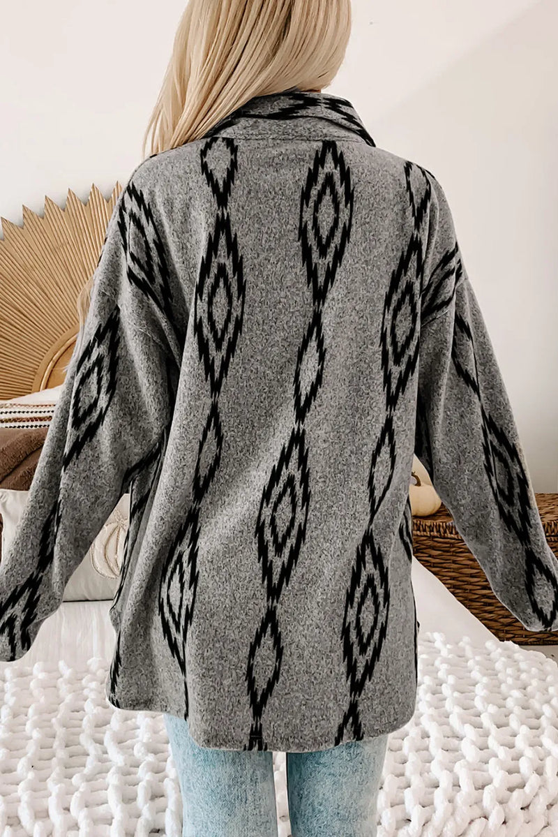 Printed Button Up V-Neck Long Sleeve Cardigan
