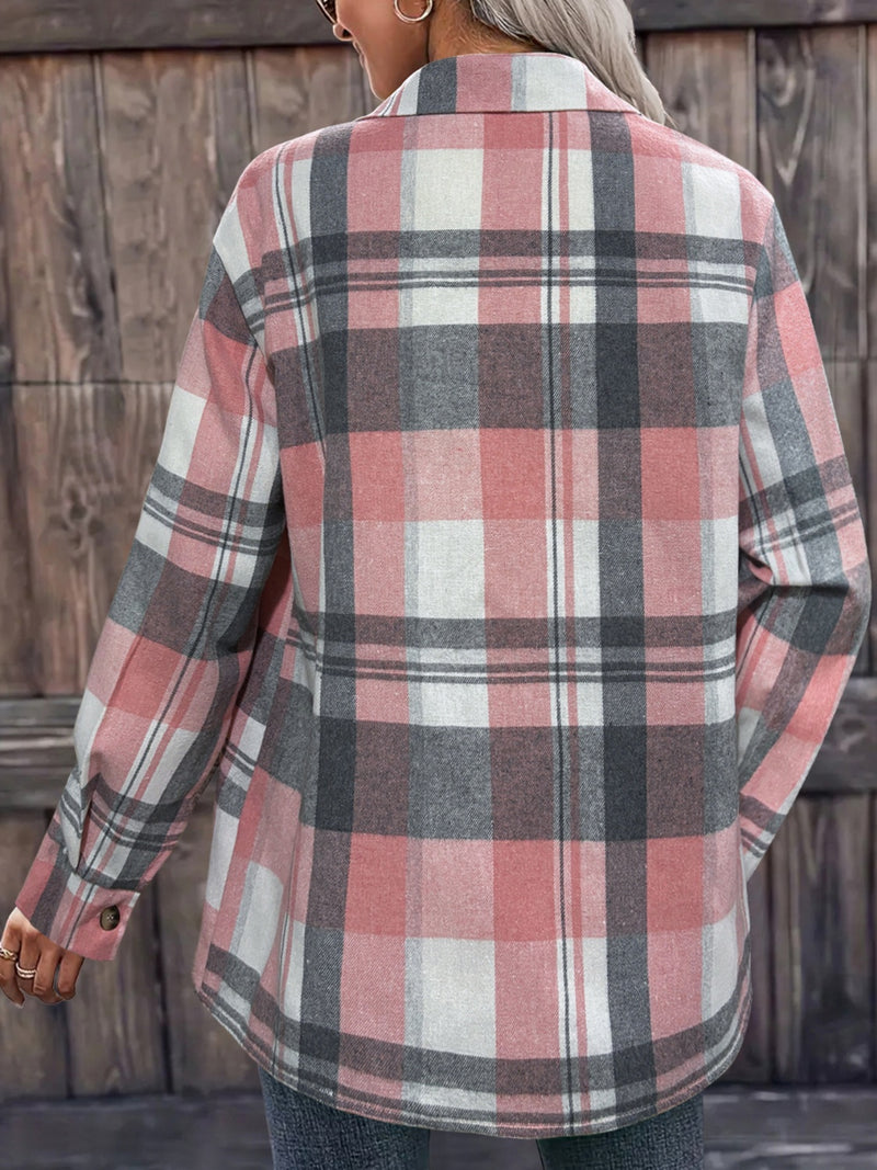 Pocketed Plaid Button Down Long Sleeve Shacket
